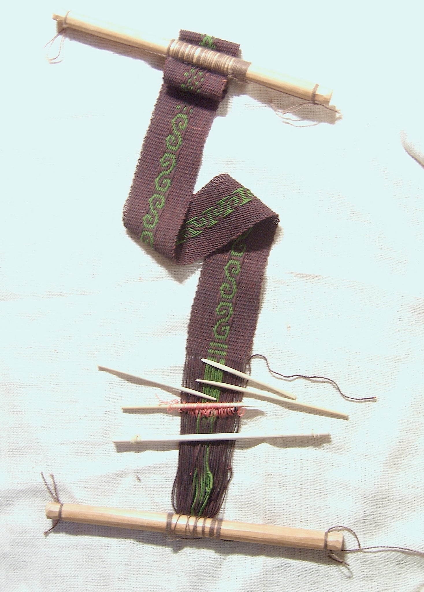 The backstrap loom consists of nothing more than a set of sticks and a strap around the weaver’s back. The backstrap loom is one of the most ancient technologies known to humankind. This loom provides an extremely portable, versatile, and affordable way of weaving.